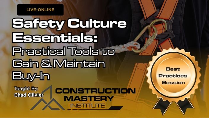 This live online session teaches the essential components of a strong construction safety culture, including developing a clear site-specific safety plan, conducting effective job hazard analyses, delivering OSHA-required worker orientations, and performing proactive pre-task planning.